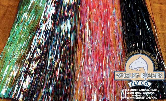 surroundings like real bait fish. Contains approximately 500 strands, 1/69" wide by 10" long. Available in a Flashabou Blend as well.
