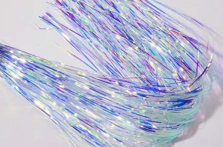 surroundings like real bait fish. Contains approximately 500 strands, 1/69" wide by 10" long. Available in a Flashabou Blend as well.